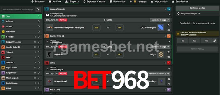O bet968 oferece uma grande seleção de opções de apostas em e-sports com probabilidades competitivas